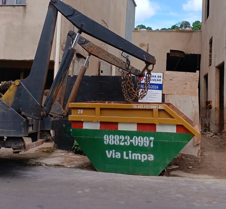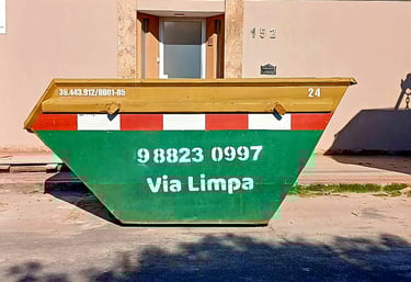 Trabalhamos com caçambas estacionárias de 5m³, ideais para obras, reformas e limpezas.